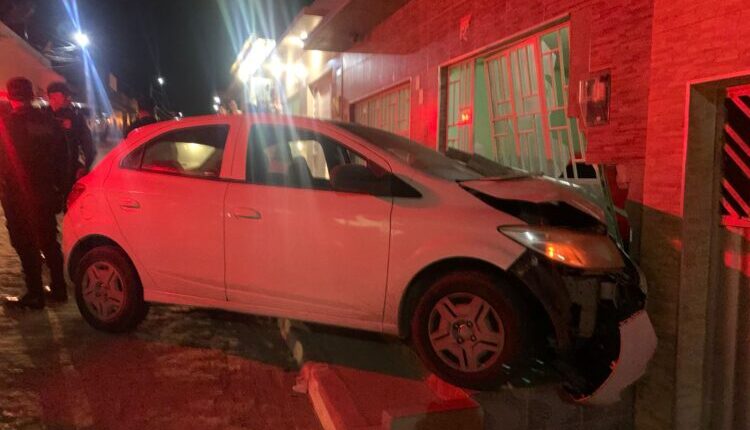 De imediato, a guarnição deslocou-se até o local, juntamente com o Grupamento RONDAC. Ao chegar, foi constatado que um veículo Chevrolet Onix 1.0 MT, de cor branca, havia colidido com a porta frontal de uma residência.