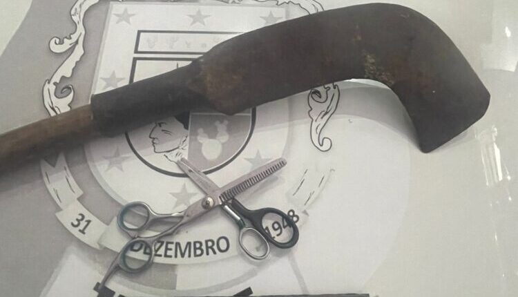 De imediato, a guarnição deslocou-se até o local, onde encontrou um senhor de 52 anos, agricultor, natural de Solidão-PE. O mesmo portava duas tesouras e uma foice, que foram apreendidas pela equipe.