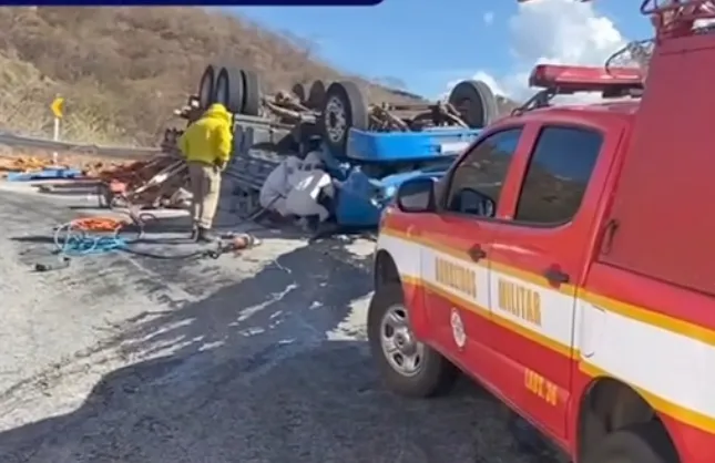 Uma tragédia foi registrada na tarde desta quarta-feira (23) na Serra do Teixeira, no trecho conhecido como “segunda curva do Apertado da Hora”. Um caminhão carregado de tijolos e cimento tombou de ponta cabeça e resultou na morte de duas pessoas que estavam no veículo. As vítimas morreram ainda no local.