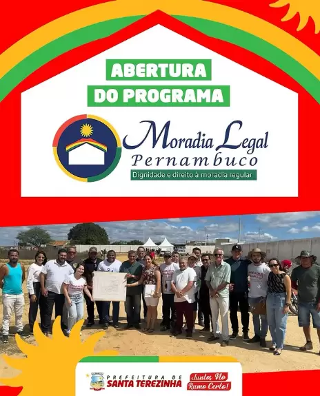 A Prefeitura de Santa Terezinha, realizou a abertura do Programa Moradia Legal – Dignidade e Direito à Moradia Regular. “Com muito orgulho, iniciamos oficialmente o Programa Moradia Legal, uma iniciativa que vai transformar a vida de muitas famílias do nosso município. O objetivo é garantir o direito à posse e à regularização fundiária, promovendo dignidade, segurança jurídica e mais cidadania para quem sonha em dizer: “essa casa é minha por direito!”, disse o prefeito Delson Lustosa.