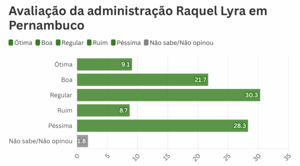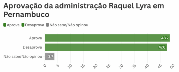 Os entrevistados também foram questionados a respeito da administração estadual. O panorama apresentado indica uma divisão entre os eleitores: 48,7%dizem aprovar a gestão Lyra, ao mesmo tempo em que 47,6% desaprovam a condução da governadora. Outros 3,7% não souberam ou não opinaram.