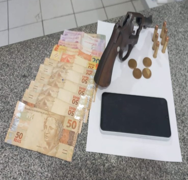 Durante a ação criminosa, o proprietário foi amarrado e amordaçado pelos suspeitos, identificados como J. R. F. da S., 44 anos, e J. É. F. de S., 39 anos. Um dos imputados portava um revólver calibre .38, nº 174573, carregado com seis munições CBC, sendo uma pinada.