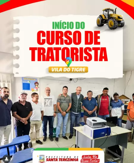 O prefeito de Santa Terezinha, Delson Lustosa, participou nesta segunda-feira (03), na Vila do Tigre, do início do curso de tratorista que a Prefeitura está oferecendo. “Serão 3 dias de aulas teóricas e 7 dias de aulas práticas, preparando os participantes para atuarem com segurança e eficiência. A Prefeitura de Santa Terezinha segue investindo em qualificação e desenvolvimento, abrindo novas oportunidades para nossa gente”, disse o gestor.