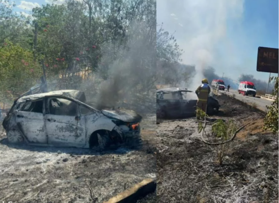 O sinistro ocorreu por volta das 13h, na altura do Sítio Pé de Serra, quando um Honda Fit branco, de placas KRR 7C58 (Sumé-PB), colidiu violentamente contra a mureta de um pontilhão do Açude Vermelho, e pegou fogo logo após o impacto.