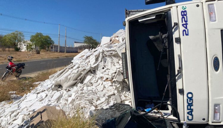 Um acidente na BR-232, em Serra Talhada, deu um grande susto no motorista Alfredo Henrique, 24 anos. Por volta de 03h da madrugada desta quinta-feira (13), o pneu do caminhão, carregado com gesso, estourou nas imediações da entrada do bairro Vila Bela, fazendo o veículo tombar. Segundo o Farol de Notícias, o condutor, que saiu ileso do acidente, disse que vinha do município de Trindade, Sertão do Araripe, em direção a João Pessoa (PB), quando escutou o estrondo e perdeu o controle do caminhão. Com ele vinha uma outra pessoa, que também não se feriu.