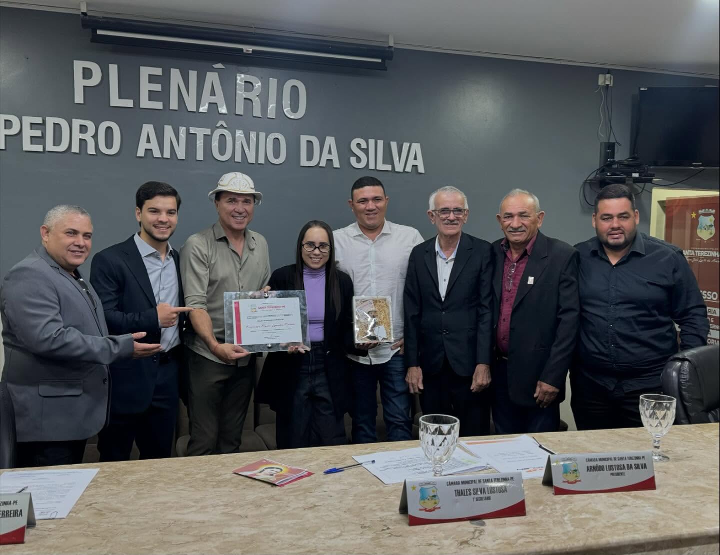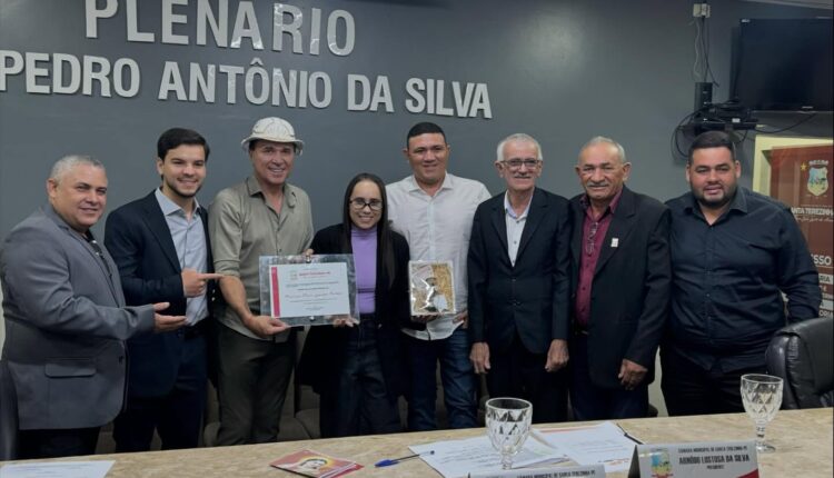 Em Sessão Solene realizada na noite dessa quarta-feira (12) a Câmara de Santa Terezinha na pessoa do presidente Nôdo Lustosa concedeu Moção de Aplausos ao cantor, poeta e compositor Flávio Leandro, reconhecido por levar a cultura pernambucana e nordestina para todo o Brasil.