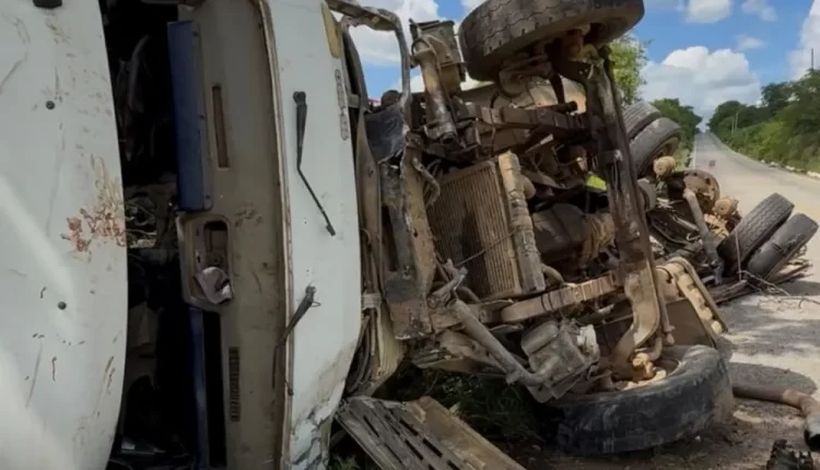 Durante o percurso, ao passar por uma baixada nas proximidades de uma ponte, um dos pneus do caminhão acabou estourando. Com a falha mecânica, o motorista perdeu o controle da direção e o veículo terminou capotando às margens da rodovia.