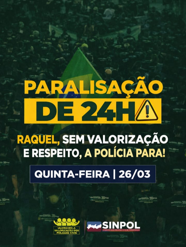 Os policiais civis de Pernambuco anunciaram nesta terça-feira (24) paralisação de 24 horas para a próxima quinta-feira (26). A decisão foi tomada pelo Sindicato dos Policiais Civis de Pernambuco (Sinpol) como forma de protesto por melhores condições de trabalho e para cobrar a abertura de canais de diálogo com o governo do estado.